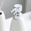 • Dispenser: Standing Soap Dispenser is a sophisticated-looking soap dispenser. The soap/lotion dispenser in our set is geared up with a stylish pump that makes a bold statement in contrast with the golden recipient. It's functional, easy to use, and guaranteed to add a sense of luxury to your bathroom!