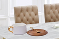 Izanstore presenting you Nordic Fancy Matte Ceramic Cup With Gold Coated Spoon & Wooden Saucer- (Pair) made up of pure ceramic value added by Arrow like gold color coated spoon and luxurious design that you can use for coffee, tea or any other drink for your distinguished guest.