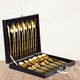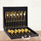 Izanstore is presenting you 24 Pcs Luxury Modern Set- Gold & Black Marblene Cutlery. This modern Cutlery set at the table is the first item that meets the diners’ eyes. Proportion, balance, and craftsmanship are the criteria of a quality Cutlery set, made of pure stainless steel.