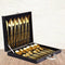 Izanstore is presenting you 24 Pcs Set- Luxury Modern Gold Matte Cutlery. This modern Cutlery set at the table is the first item that meets the diners’ eyes. Proportion, balance, and craftsmanship are the criteria of a quality Cutlery set, made of pure stainless steel.