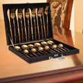Izanstore is presenting you Luxury Modern Gold Cutlery Set. This modern Cutlery set at the table is the first item that meets the diners’ eyes. Proportion, balance, and craftsmanship are the criteria of a quality Cutlery set, made of pure stainless steel.