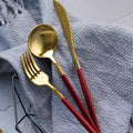 Izanstore is presenting you Red Handles- 4 Pcs Single Serving Stainless Steel Cutlery Set Lavish. This modern Cutlery set at the table is the first item that meets the diners’ eyes. Proportion, balance, and craftsmanship are the criteria of a quality Cutlery set, made of pure stainless steel.