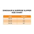 Dinosaur image on one shoe and surprise will be written on another one in a pair.