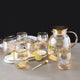 Izan store is gladly presenting you a Grey Borosilicate glass jug set with stainless steel filter lid - 7 Pcs. A unique form of clear glass will emphasize the charm of the drink and the borosilicate glass is a guarantee of durability. A large, handy handle and extended spout ensure precise pouring. Thanks to the lid that will filter scented tea quickly and precisely. Steel filtering spiral holds tea leaves, fruits, and herbs. The spiral can be removed for cleaning, so you can get everything back in order in no time. This glass jug set brings people together and helps to organize relaxing evenings. Its optimum capacity makes it suitable for a meeting with friends or for time alone with a book, a film, or sweet laziness (which everyone needs). The simple form of transparent glass will emphasize the charm of the drink, so drinks will always be served aesthetically. A large, handy handle securely holds in your hand, and the extended spout (like a kettle) ensures precise pouring of the drink. You can conveniently fill cups with fruit, herbal, green, red, white, or black tea. The cork (natural raw material) lid guarantees that the contents will not heat up or cool down so quickly.