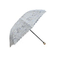 Green collapsible umbrella with novelty printed white flowers that turn multi-colored when wet. As the umbrella dries off the colors return to white, allowing you to enjoy the transformation time and time again.