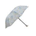 •  Light Blue collapsible umbrella with novelty printed white flowers that turn multi-colored when wet. As the umbrella dries off the colors return to white, allowing you to enjoy the transformation time and time again.