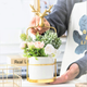 • Quality: High-fired white porcelain flower pot with golden pattern with fine glaze finish & distinct design.