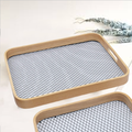 3 PCS Serving Tray- Wooden Rattan Pattern