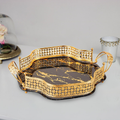 Material: Marble Tray with gold coated stainless steel handle.