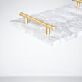 Izanstore.com is presenting you Nordic Grey Marble Serving Tray, with a gold color handles made of stainless steel, on both sides.