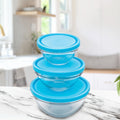 3 Pieces Glass Food Storage Bowl Set, eco-friendly food containers keep food fresh and are absolutely safe for all types of food storage needs. Set of Glass Food Storage Box is available in 3 different sizes, made from refined Glass for daily uses for Storage & Fridge.