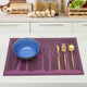 Washable and Easy to clean: Easy to wipe clean. Hand wash in warm soapy water and wipe dry; if there is stains stuck in the place-mat, use a brush and soapy water to clean it. No machine wash.